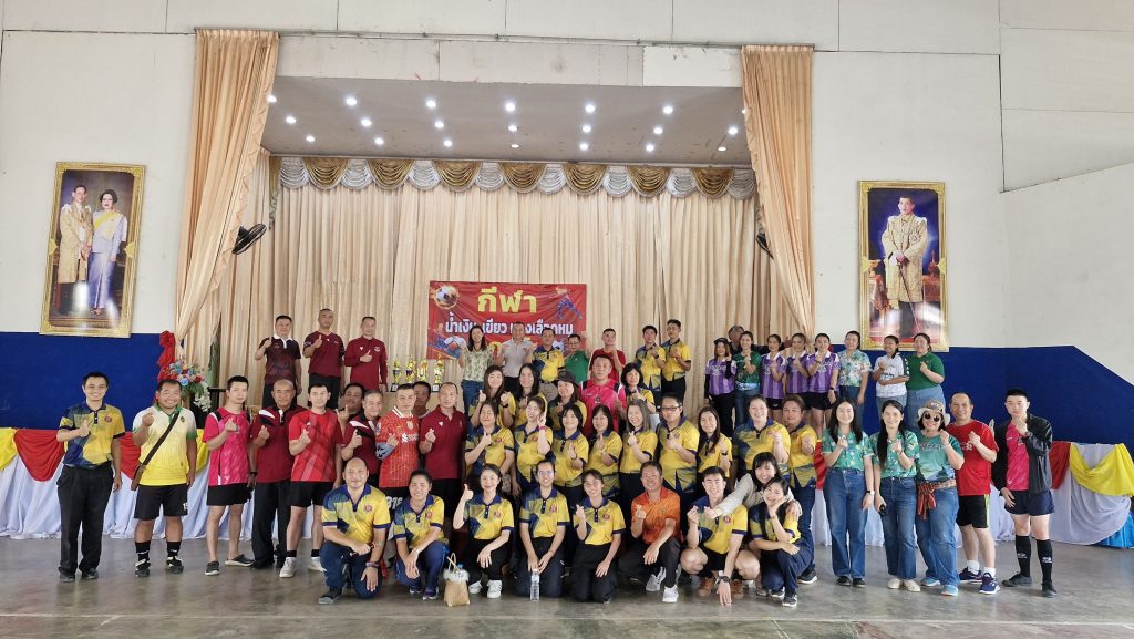กิจกรรมแข่งขันกีฬาสานสัมพันธ์ “น้ำเงิน เขียว แดงเลือดหมู เกมส์” ครั้งที่1 ประจำปี 2568 โดยมี พ.ต.อ.สมชาย สุรินทชัย ผกก.สภ.ภูกามยาว และ นายอรรณพ ยะตา ผู้อำนวยการสถานศึกษาชำนาญการพิเศษ ผู้อำนวยการโรงเรียนดงเจนวิทยาคม ร่วมกล่าวเปิดงาน กิจกรรมแข่งขันกีฬาสานสัมพันธ์ ในครั้งนี้ ซึ่งมีหน่วยงาน เข้าร่วมแข่งขันทั้งหมด 3 หน่วยงาน ประกอบด้วย โรงเรียนดงเจนวิทยาคม ธนาคารเพื่อการเกษตรและสหกรณ์การเกษตร สาขาภูกามยาว และ สถานีตำรวจภูธรภูกามยาว